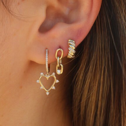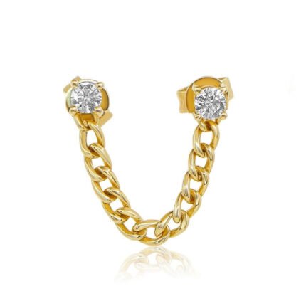 "Elegant 18k Gold Round Moissanite Diamond Cuban Link Connecting Earring – a unique design with Moissanite diamonds and stylish Cuban link accents."