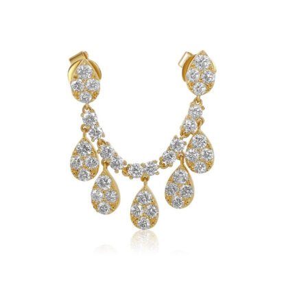 "Elegant 18k Gold Moissanite Diamond Pear Drop Connecting Earring – a chic design with pear-shaped Moissanite diamonds, perfect for adding a touch of sophistication."