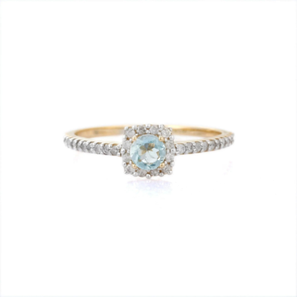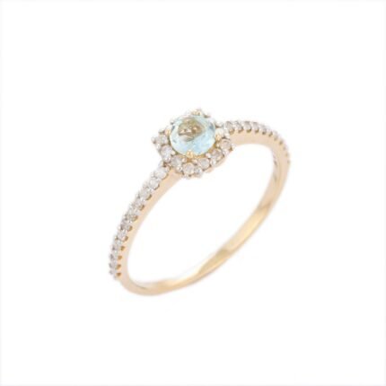 This 14K Gold Aquamarine Ring features a stunning 0.26 ct round-cut aquamarine gemstone, measuring 4.1 mm. A perfect blend of elegance and style for any occasion.