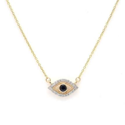 Protective 14K solid gold necklace featuring a symbolic evil eye pendant—crafted for modern charm, meaningful style, and everyday elegance.