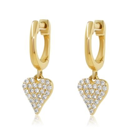 18k Gold Pave Moissanite Diamond Heart Mini Hoop Earring