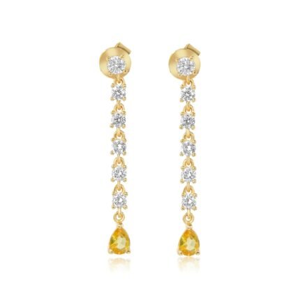 18k Gold Moissanite Diamond Drop Earring with Yellow Sapphire Pear Drop