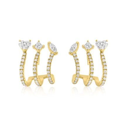 "Elegant 18k Gold Moissanite Diamond Multi Shape Cage Earring – a striking design with Moissanite diamonds in different shapes, set in a cage for a bold, contemporary style."