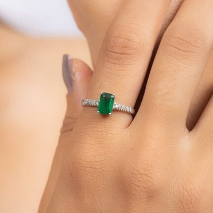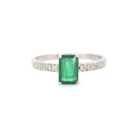 A stunning 14K solid gold ring featuring a vibrant emerald, offering a timeless and elegant design perfect for any occasion.