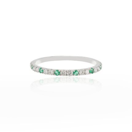 Elegant and vibrant, this 14K solid gold eternity band features alternating emeralds and diamonds—perfect for stacking or marking life’s milestones.
