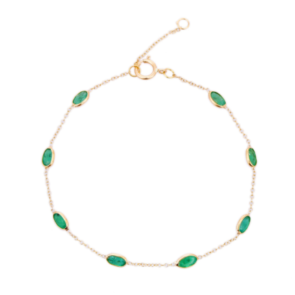 Elegant 14K solid gold station bracelet featuring natural emeralds. A timeless design that adds vibrant green accents and sophisticated charm.