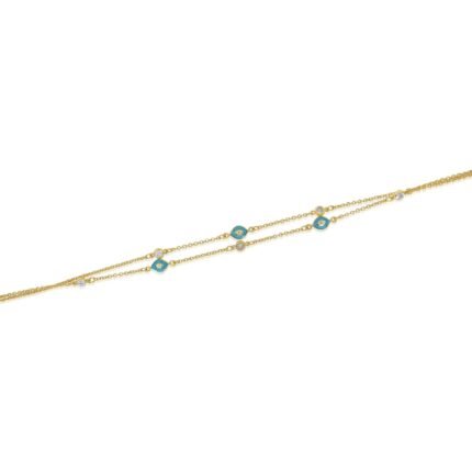 A sleek, colour-rich evil eye bracelet in 18K solid gold, finished with blue enamel and sparkling natural diamond accents for everyday elegance and meaning.