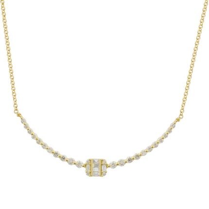14K Gold Diamond Baguette Cut Lab Grown Necklace